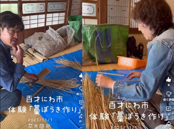 2025年11月1日、色づき始めた秋の庭「緑ひらく庭百才」(東京都東村山市)に、多くの笑顔が集まりました。地域文化と手仕事を体験できるイベント「百才にわ市」が開催され、参加者たちは澄んだ空気と柔らかな陽光の中、藁ほうき作りに挑戦しました。